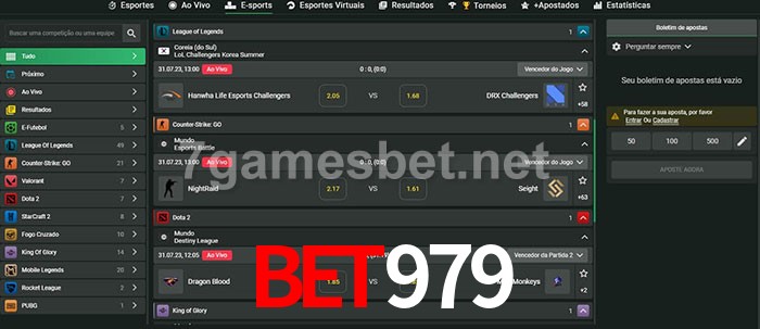 O bet979 oferece uma grande seleção de opções de apostas em e-sports com probabilidades competitivas
